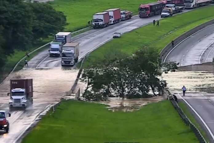 A rodovia D. Pedro I foi bloqueada nos dois sentidos na altura do km 122, na cidade de Valinhos, interior de São Paulo, devido ao transbordamento do rio Atibaia causado pelas fortes chuvas na região de Campinas.