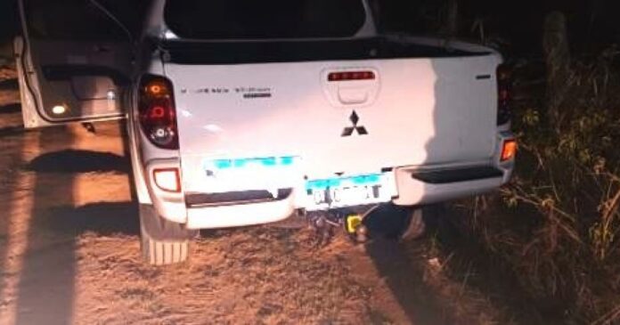 Os policiais identificaram uma caminhonete L200 estacionada às margens da rodovia e, ao abordarem o veículo, constataram que o motorista havia utilizado fita isolante para modificar dois caracteres da placa traseira, dificultando sua identificação. Além disso, o QR code da placa dianteira também estava adulterado com o mesmo material.