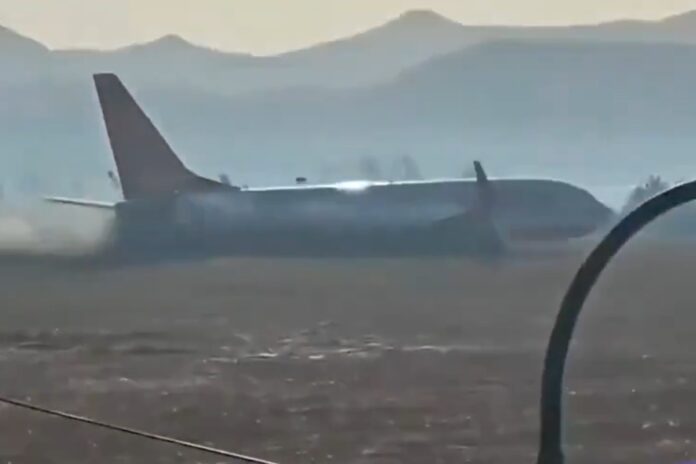 Nas imagens, é possível observar o avião saindo da pista e explodindo ao colidir com a cerca de proteção do aeroporto, gerando uma grande coluna de fumaça imediatamente.