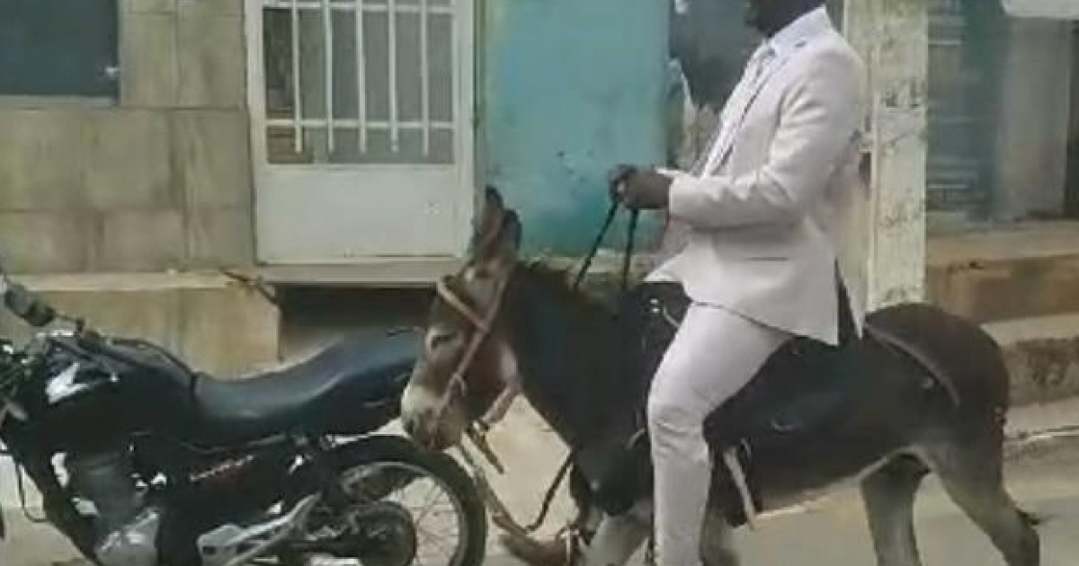 Vereador chega para posse montado em jumento no centro-norte baiano