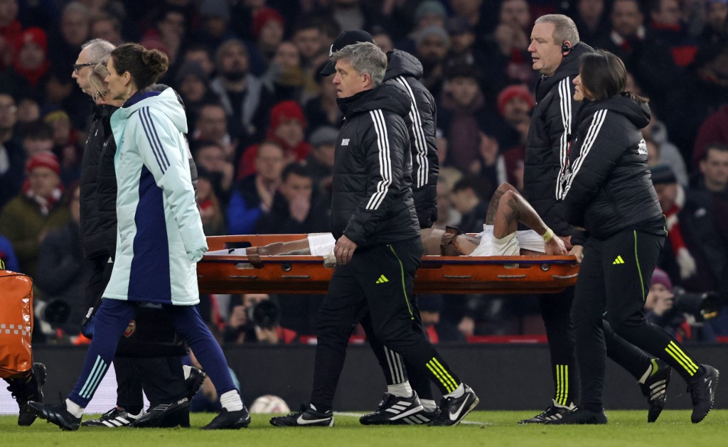 Gabriel Jesus sofre lesão em jogo do Arsenal contra o Manchester United e sai de campo chorando