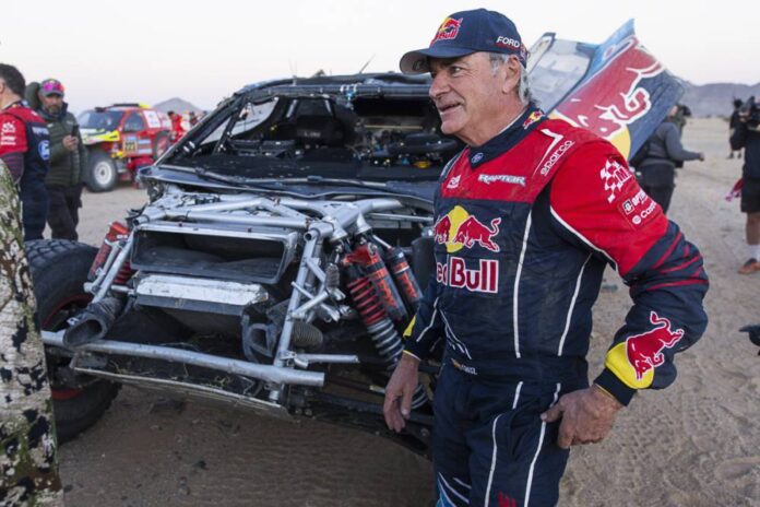 Resumo: Carlos Sainz é obrigado a abandonar o Rali Dakar 2025 depois de capotar seu veículo no km 327 da segunda etapa. Sua participação é encerrada devido a danos na jaula de segurança. Enquanto isso, Yazeed Al Rajhi vence a etapa, mas Henk Lategan se destaca como líder geral.
