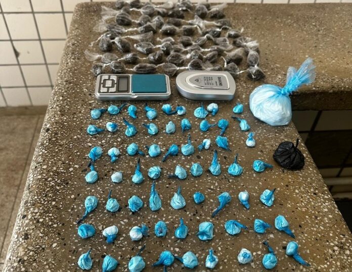 Ao chegarem ao local, os policiais avistaram suspeitos na via pública, os quais fugiram para uma área de mata ao perceberem a presença policial. Durante a busca, uma bolsa contendo drogas foi encontrada, totalizando 55 buchas de maconha, 67 petecas de cocaína, 02 embalagens de cocaína e 02 balanças de precisão. O material apreendido foi encaminhado para exames periciais no Departamento de Polícia Técnica (DPT) pelo delegado responsável.