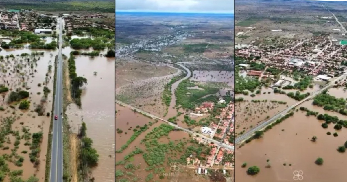 As fortes chuvas que atingem a Bahia nos últimos dias causaram o transbordamento do Rio Jacuípe, alagando diversas áreas no Distrito de Santo Antônio, em São Domingos. Imagens aéreas captadas por um drone nesta quarta-feira (15) mostram a extensão da inundação, com grandes áreas submersas.