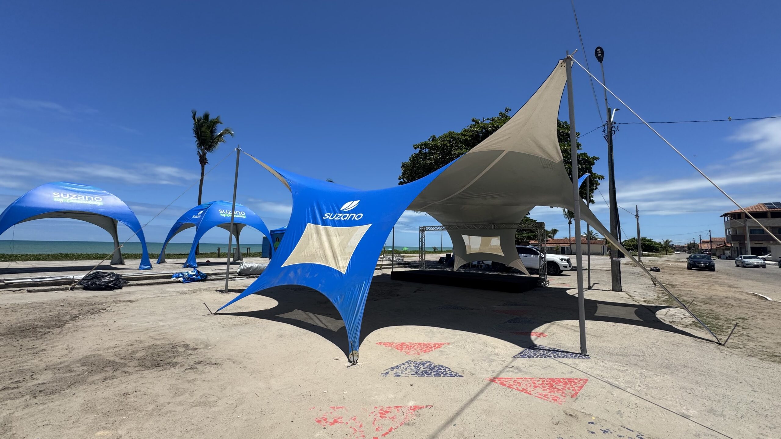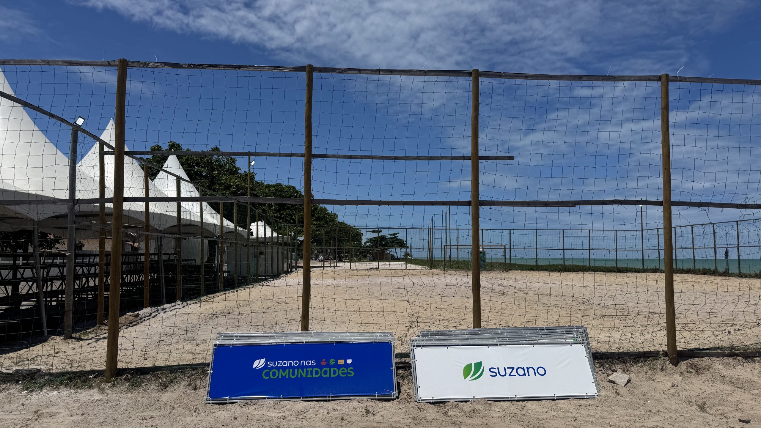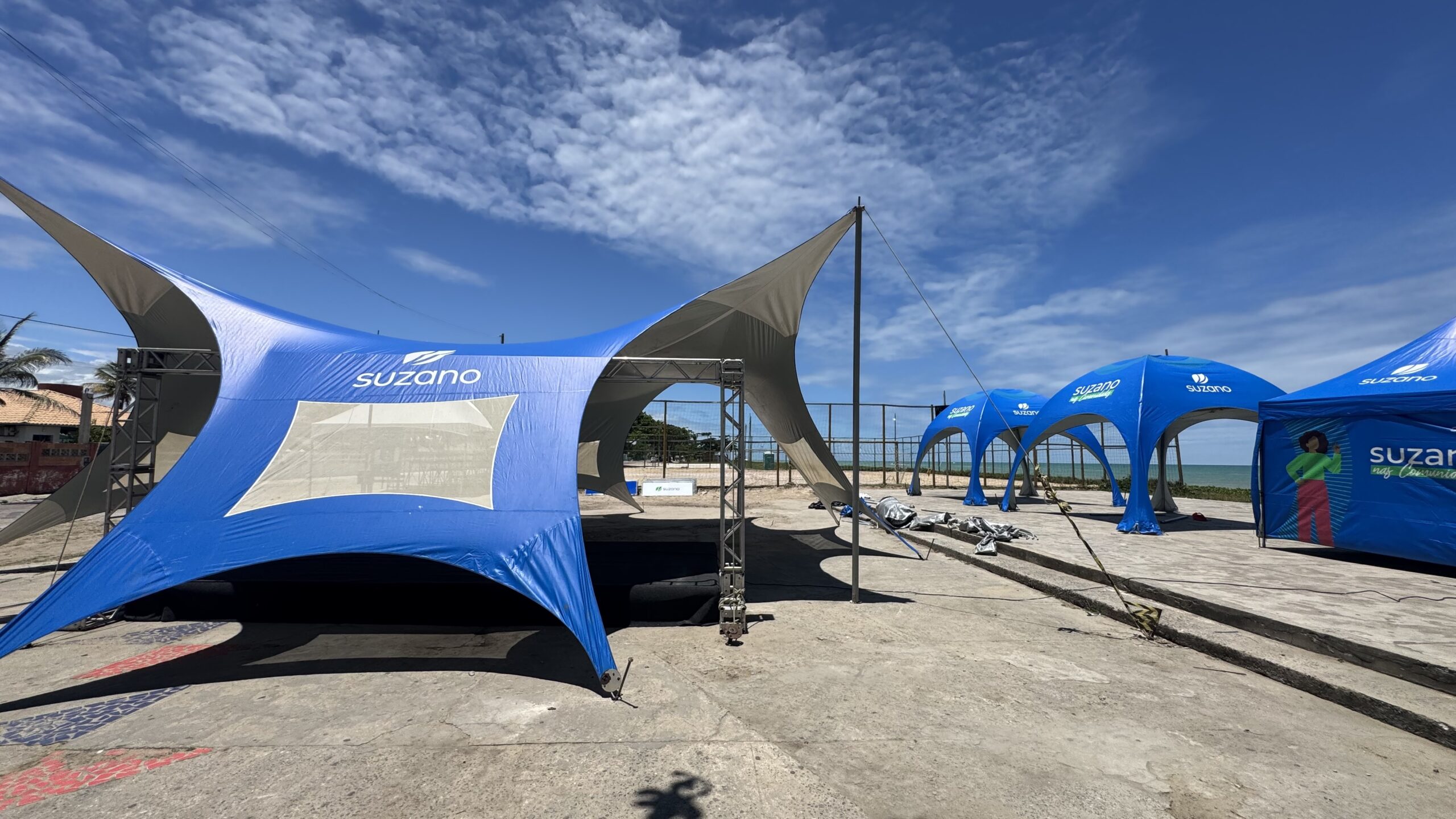 A Arena Suzano nas Comunidades está sendo montada na Orla do Centro, em Alcobaça. Um espaço multiuso à beira-mar, que congrega esporte, saúde e muito entretenimento, com uma programação recheada para esse final de semana, dias 25 e 26 de janeiro, na Arena Roniery Barbosa, na orla da cidade.