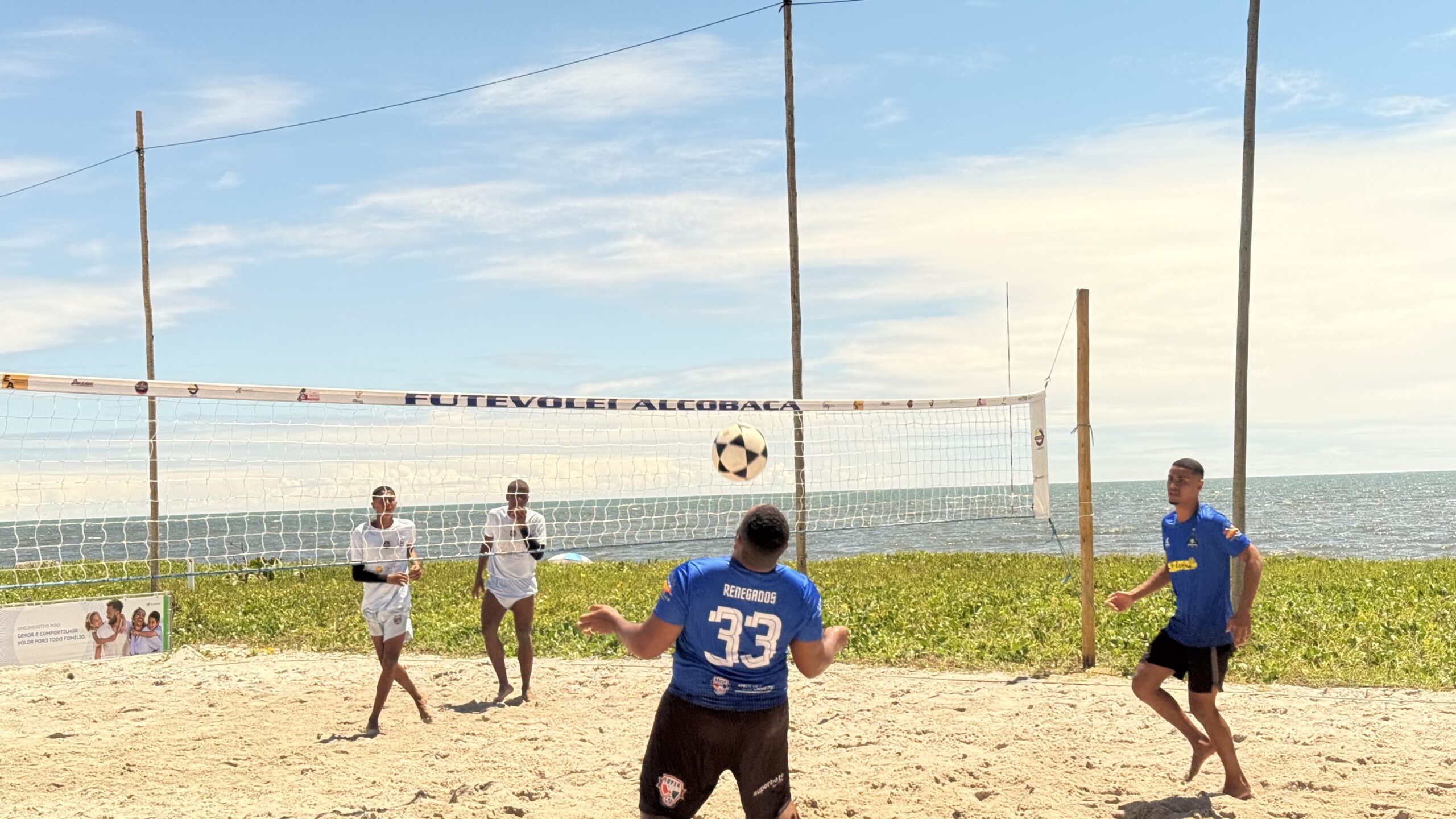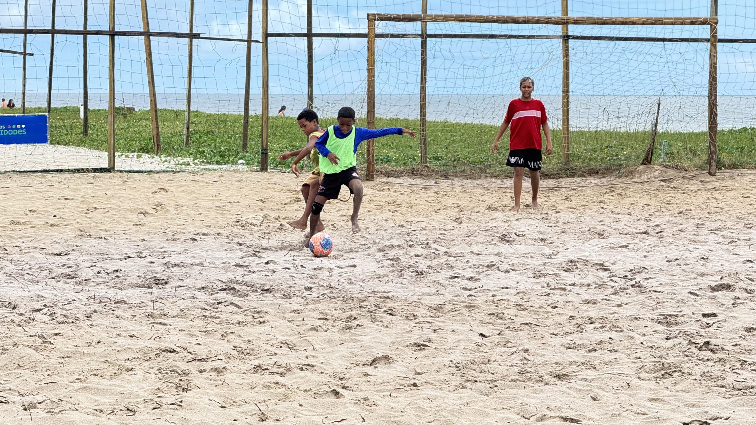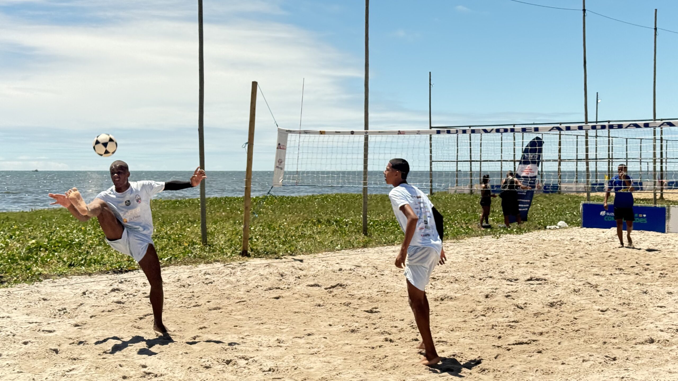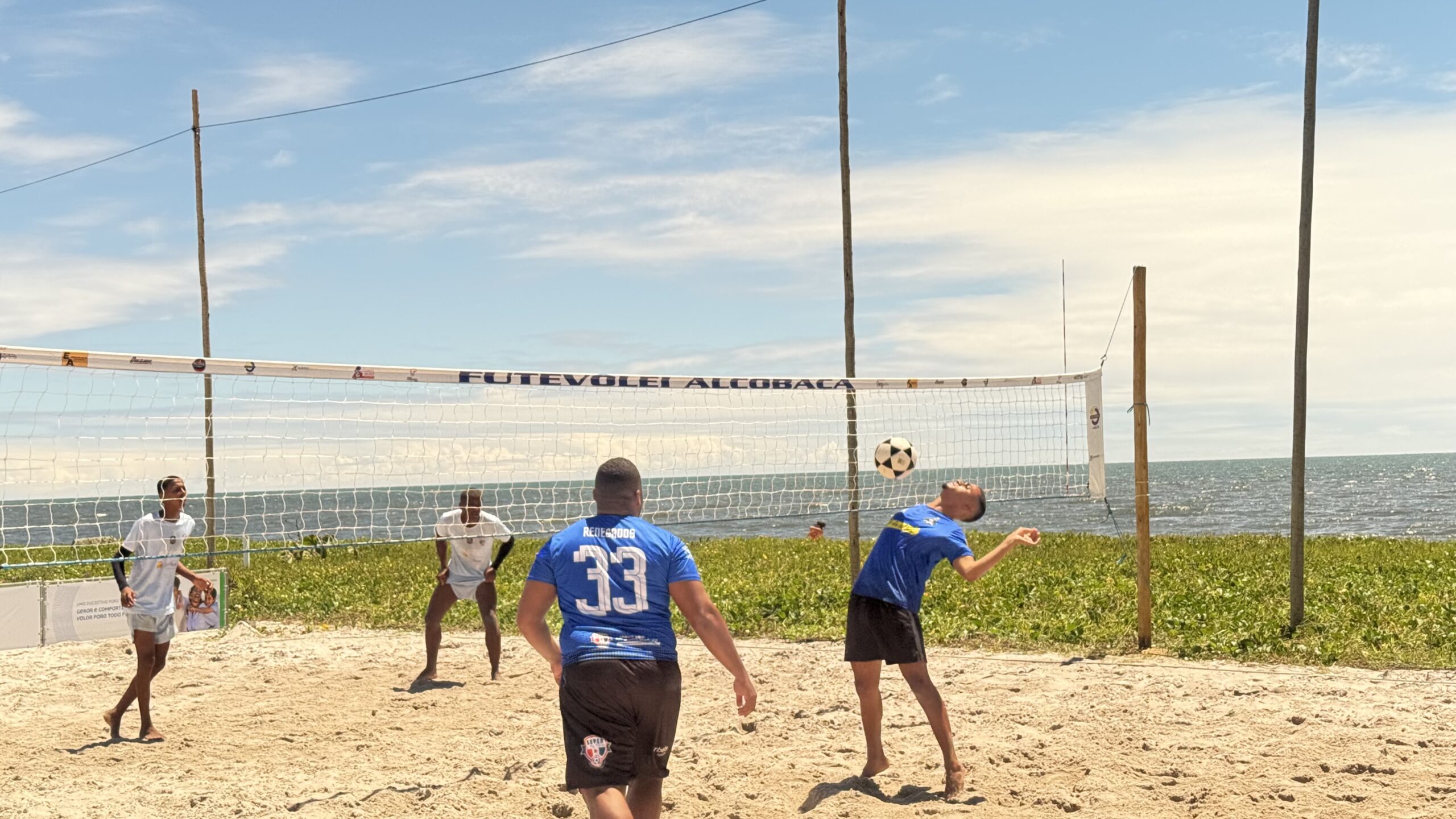 Disputa de beach soccer na Arena Roniery Barbosa, na orla de Alcobaça