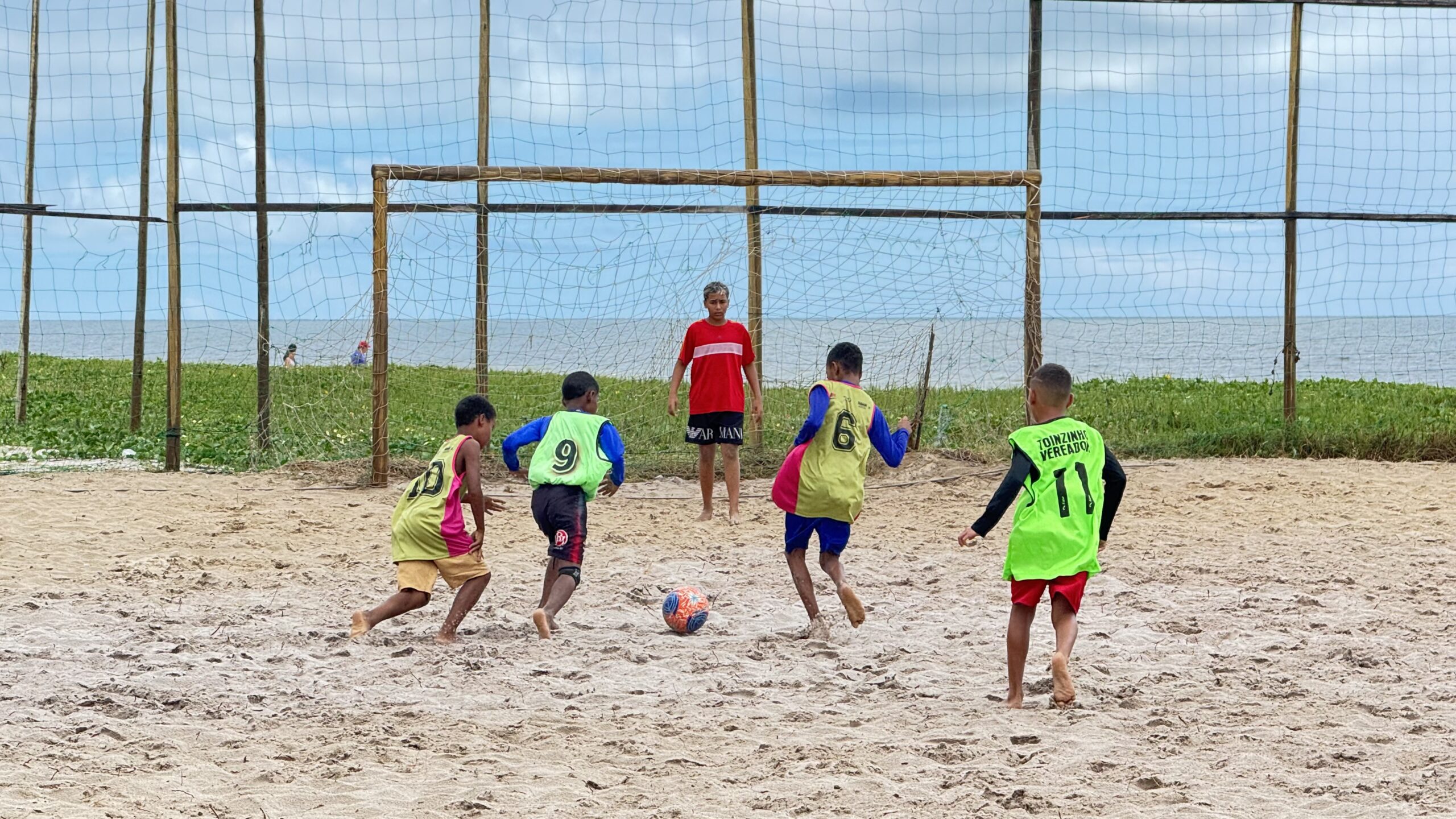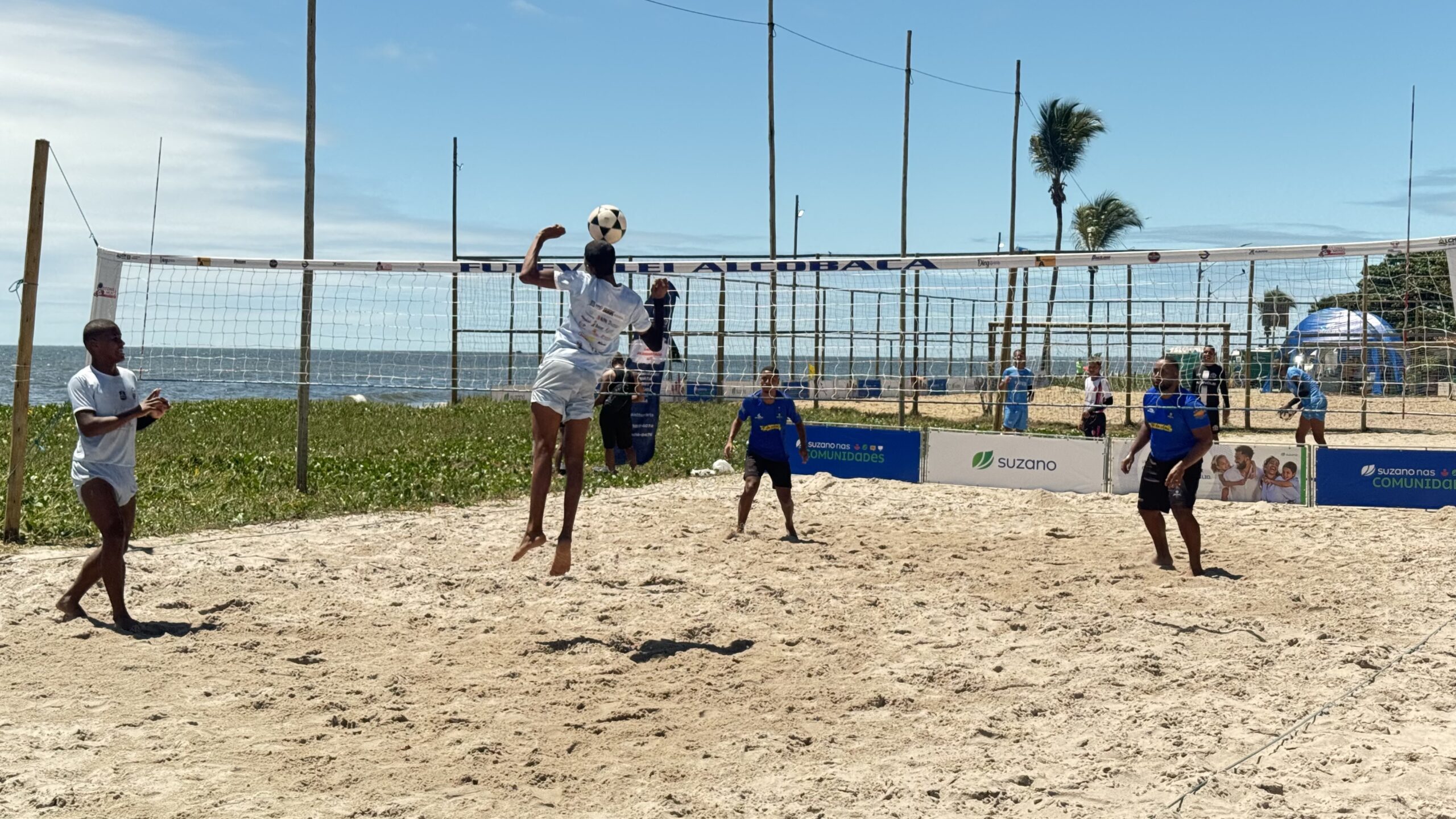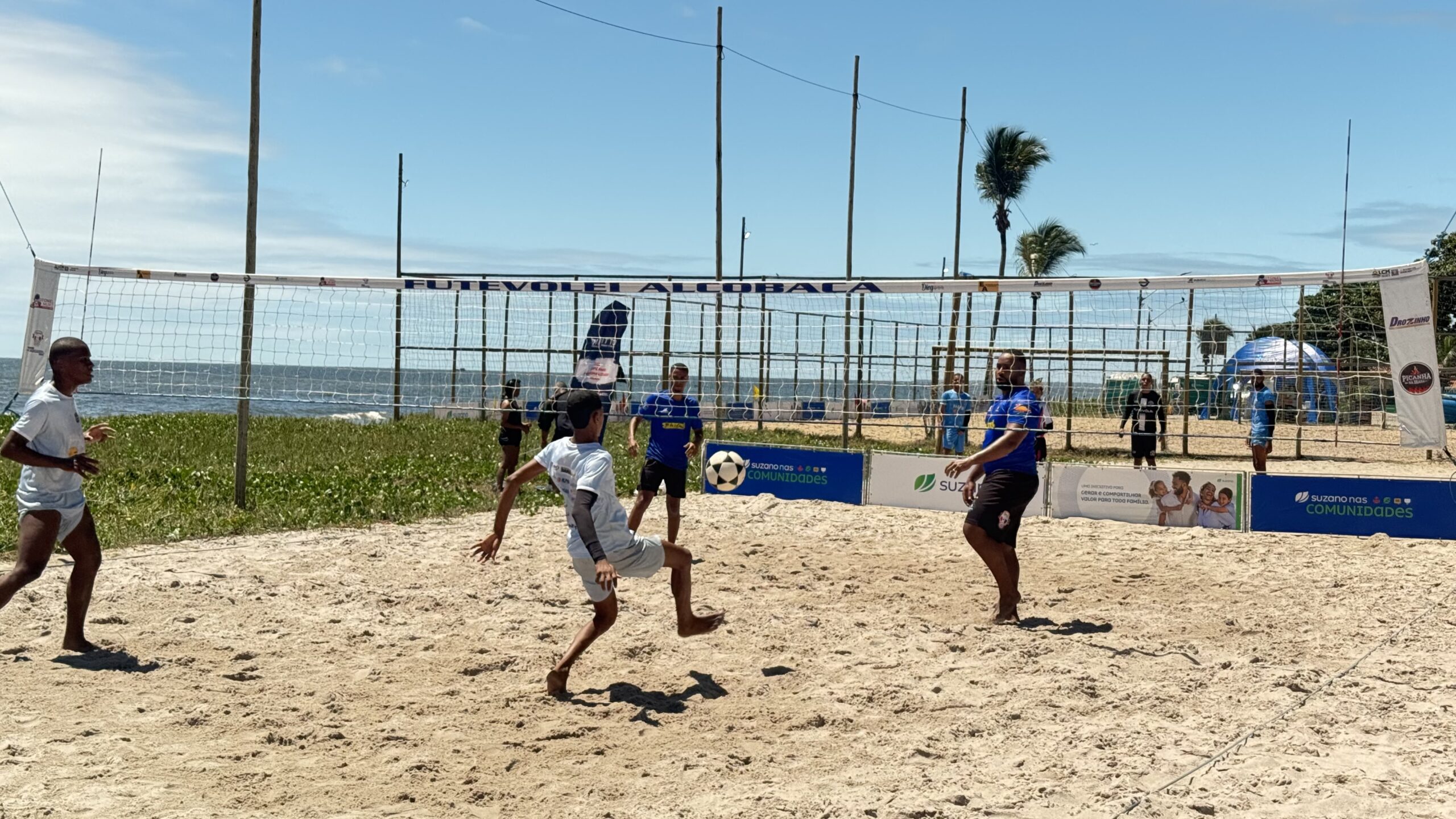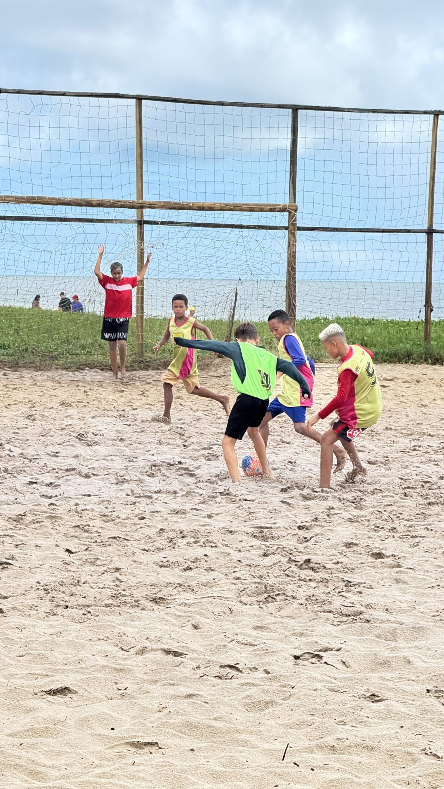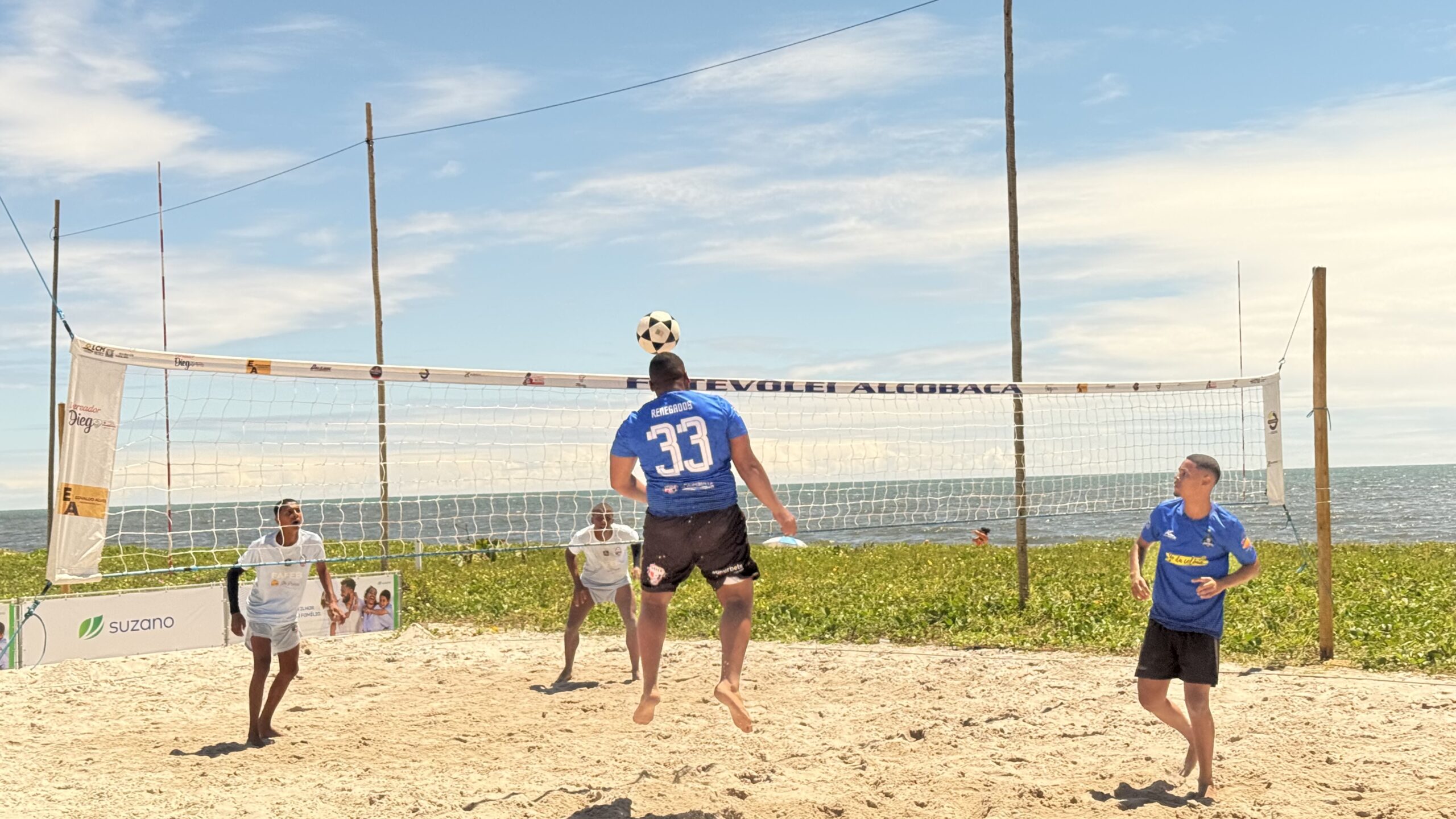 Disputa de beach soccer na Arena Roniery Barbosa, na orla de Alcobaça