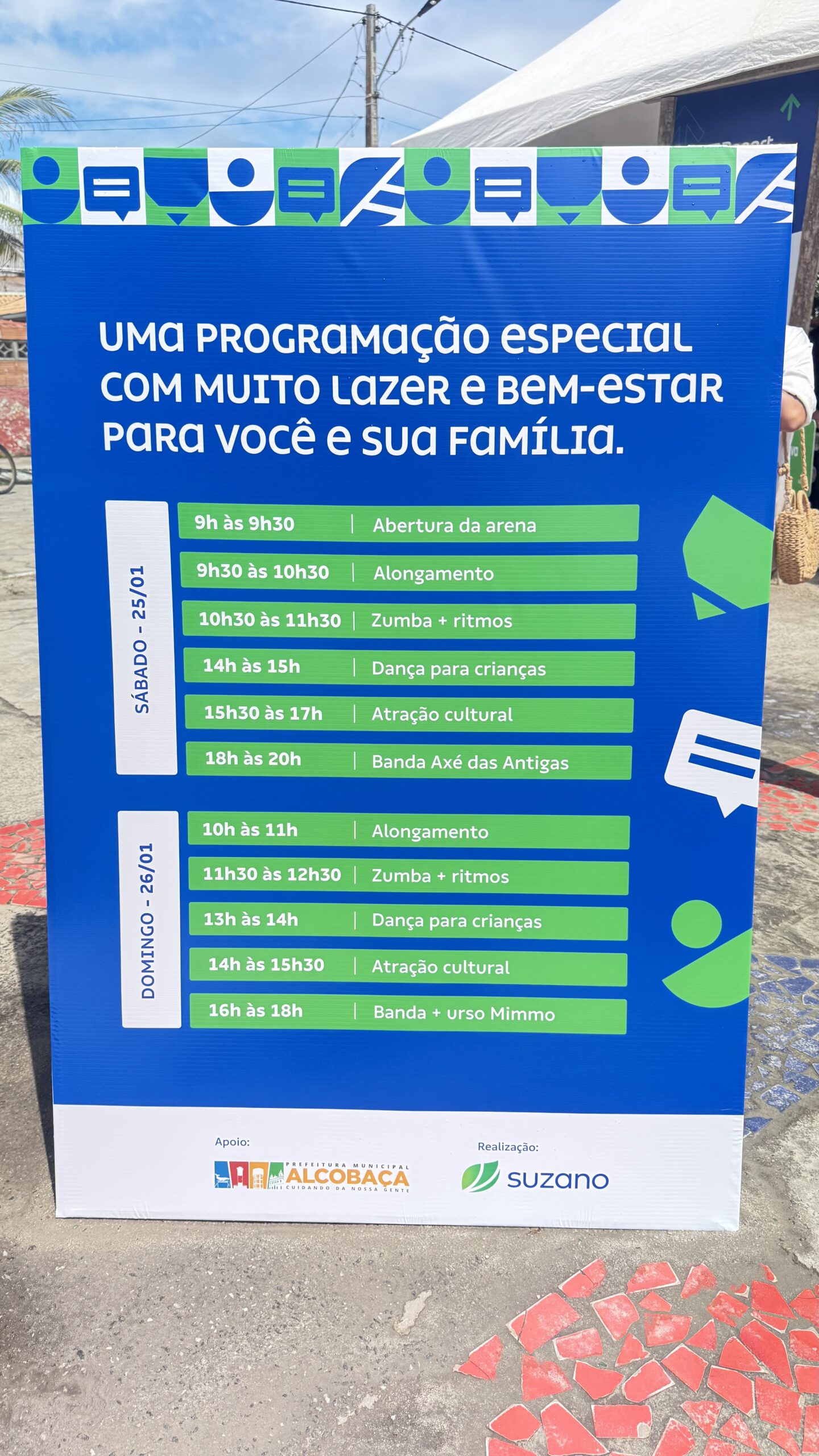 Uma iniciativa da Suzano em parceria com a Prefeitura de Alcobaça, por meio da Secretaria Municipal de Turismo, Cultura e Esporte, visando promover ações para moradores e turistas de Alcobaça, no Sul da Bahia.