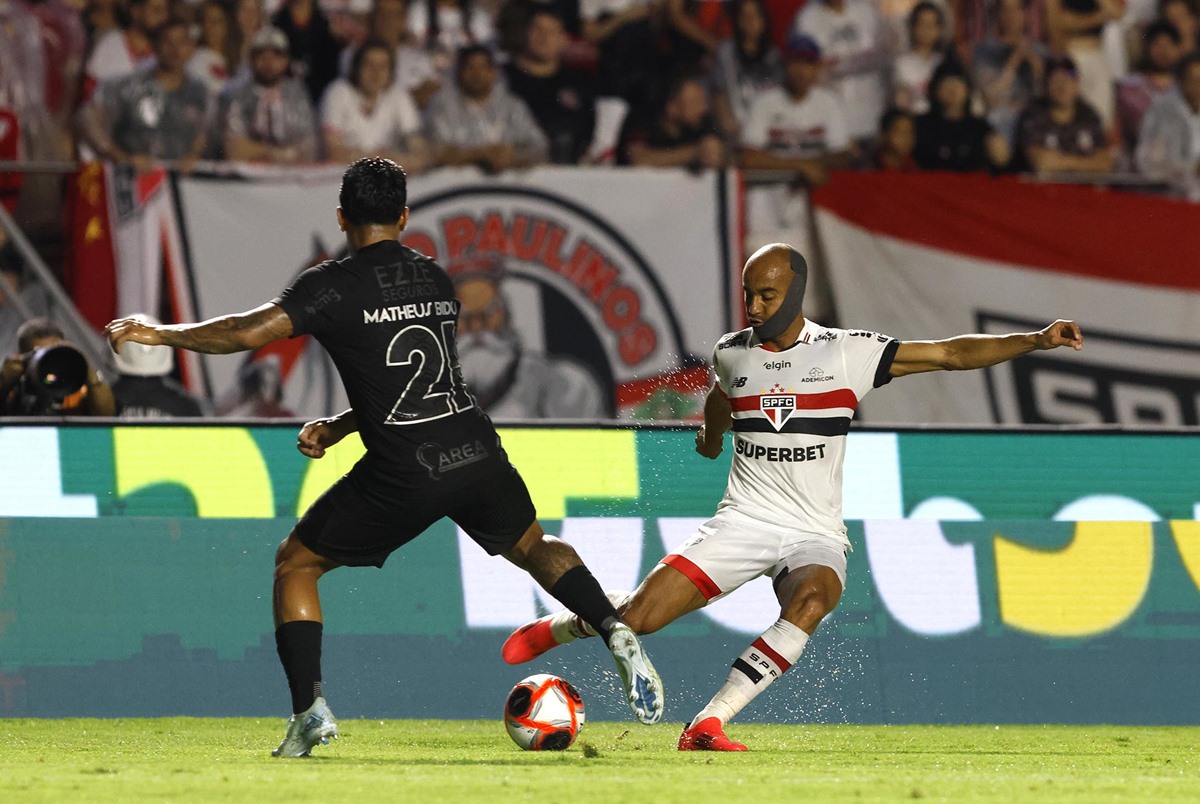 O clássico começou com as duas equipes buscando o ataque e criando oportunidades claras de gol. O São Paulo dominou o ritmo nos primeiros 20 minutos, mas o Timão assumiu o controle depois dos 30. Rafale, goleiro do São Paulo, fez defesas importantes, principalmente em um chute de Memphis Depay e uma cabeçada perigosa de Cacá.