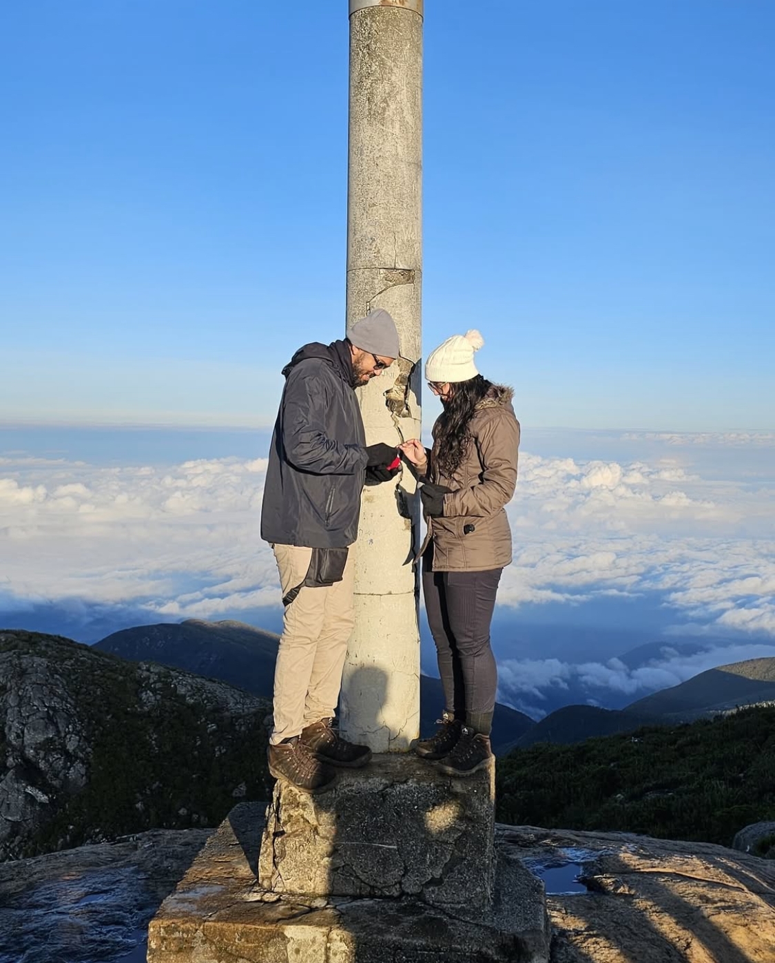 Era pra ser só mais um passeio, no entanto, a expedição ao Pico da Bandeira marcou a vida de Adroaldo Cardoso dos Santos Júnior, sua namorada, Vanessa da Mota Alencar, e outros trinta aventureiros do extremo sul baiano. Além de mantimentos e equipamentos de segurança, Adroaldo carregava um desejo de surpreender sua amanda fez isso à quase 3 mil metros de altura, pedindo em casamento no topo da montanha ao nascer do sol.