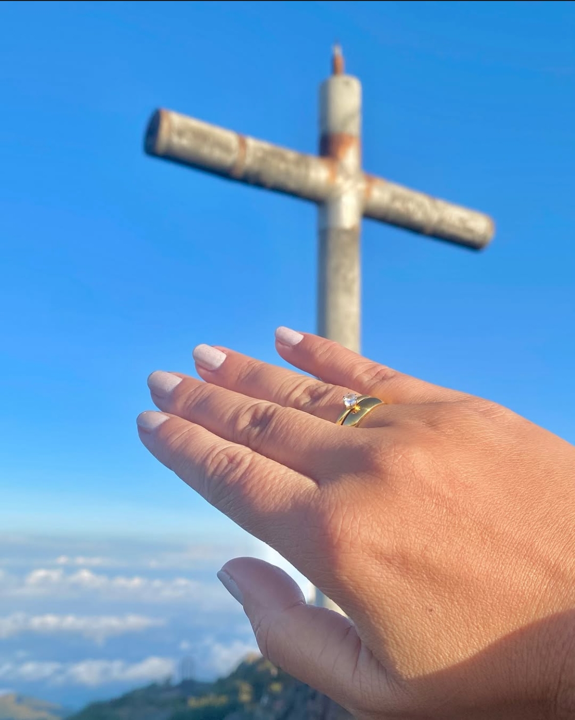 Momentos antes, tudo parecia conspirar contra. O tempo não estava favorável. O desejo de Júnior era fazer o pedido nas alturas, então, a noite foi de ansiedade e oração para tudo dar certo. O pedido parece ter sido atendido por Deus, com um raiar de dia maravilhoso e espetacular, iluminando o momento do casal, numa paisagem de tirar o fôlego, do alto da montanha, localizada na divisa do Espírito Santo e Minas Gerais, a terceira mais alta do Brasil com 2.850 metros de altitude.