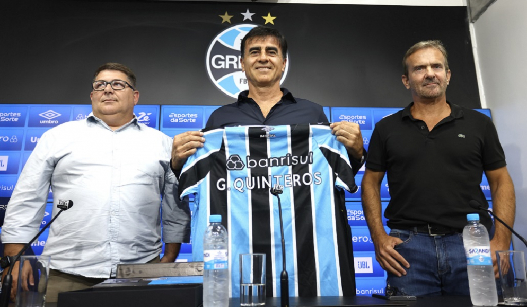 O treinador Gustavo Quinteros foi demitido pelo Grêmio nesta quarta-feira (16) após a derrota para o Mirassol por 4 a 1, pela quarta rodada do Campeonato Brasileiro. Quinteros, nascido na Argentina e naturalizado boliviano, tinha sido contratado em 28 de dezembro, após se destacar pelo Vélez Sarsfield. Em 18 jogos, o comandante teve aproveitamento de 57%, com oito vitórias e cinco empates.