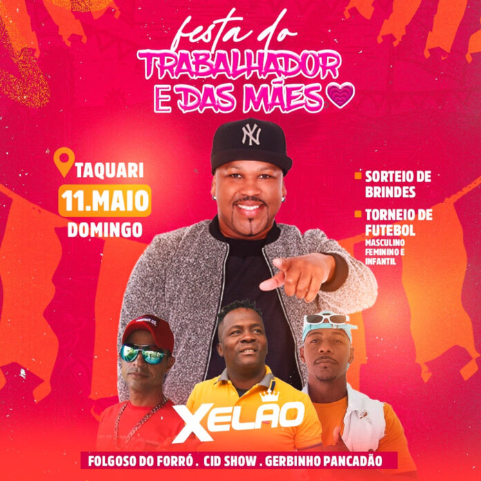 Domingão com uma grande programação em Taquari, distrito do município de Alcobaça. O evento, que será realizado na praça central, contará com uma série de atrações, incluindo música ao vivo e esportes, neste domingo, dia 11 de maio.