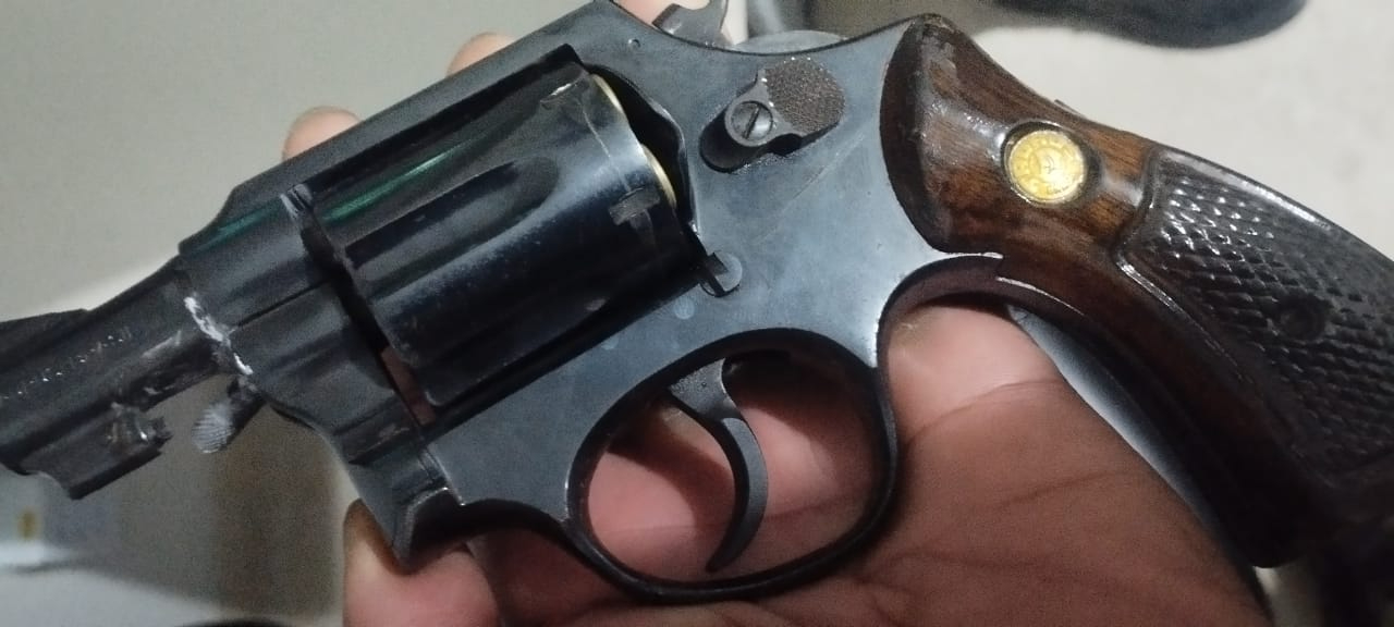 Durante a ação criminosa, ele ainda tentou fazer uma mulher de refém e acertou dois disparos de arma de fogo contra um policial militar. Um revólver calibre 38 e munições foram apreendidos.