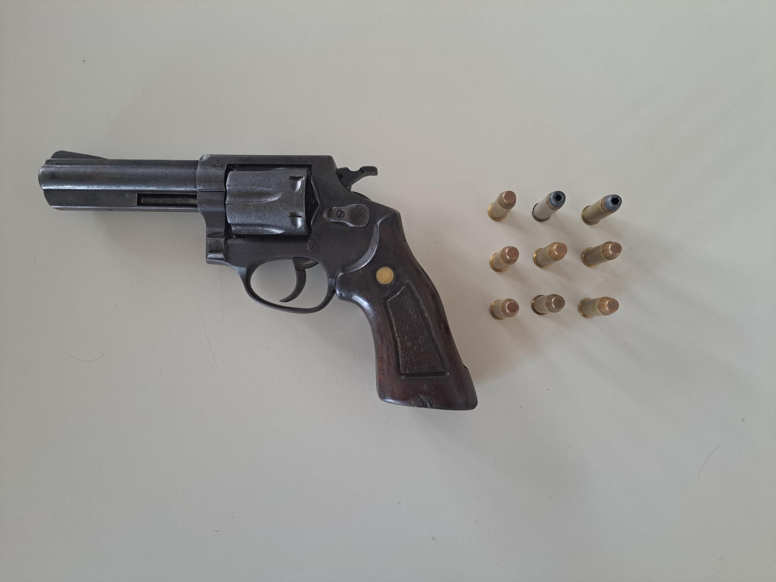 Durante a averiguação, os policiais localizaram um revólver calibre .38, municiado, escondido dentro de uma gaveta, além de outras munições no local. O homem apontado como proprietário da arma foi identificado e detido. Segundo apurado, ele já havia sido preso anteriormente, em 2023, pelo mesmo crime: porte ilegal de arma de fogo.