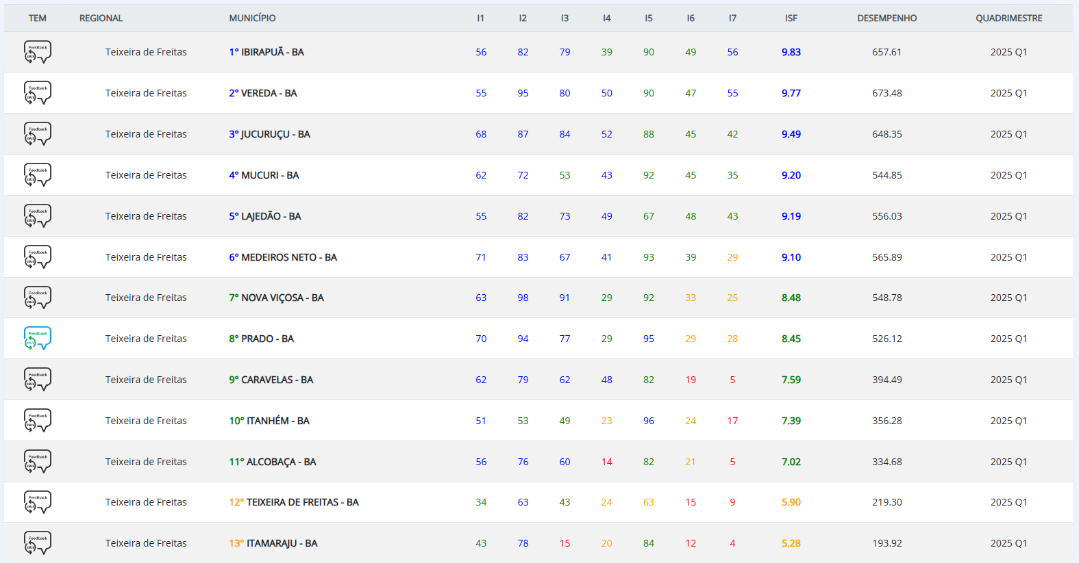 Comparativo de desempenho da saúde pública nos 13 da região extremo sul da Bahia