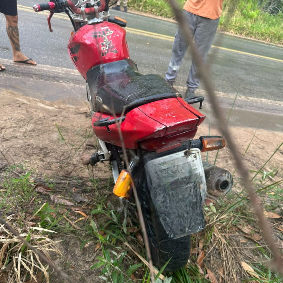 Na tarde de 20 de agosto, por volta das 14h30, a Polícia Militar recuperou uma motocicleta furtada em Caravelas. O veículo foi encontrado às margens da BR-418, nas proximidades do trevo de Taquari, após uma denúncia indicar que estaria escondido em um matagal.