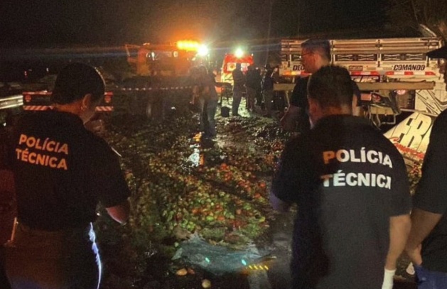 De acordo com informações do Acorda Cidade, um caminhão carregado de tomates perdeu o controle em uma curva, atravessou a pista contrária e colidiu frontalmente com um veículo Corolla Cross. Infelizmente, os três ocupantes do carro de passeio não sobreviveram e ficaram presos às ferragens.