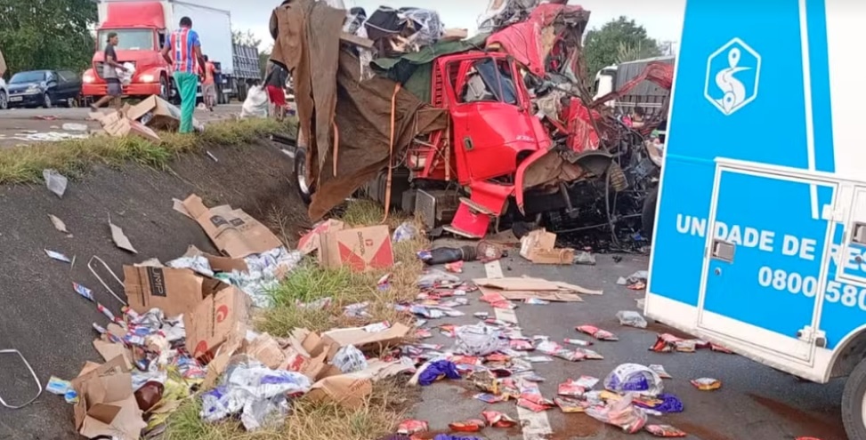 Testemunhas registraram imagens do ocorrido, mostrando um dos caminhões completamente destruído. A via, que teve que ser parcialmente interditada após o acidente, foi liberada para tráfego por volta das 9h20.