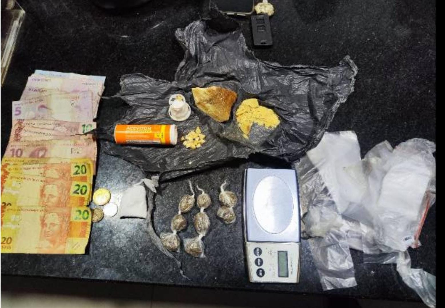 Durante um patrulhamento na Rua 22 de Abril, os policiais abordaram um homem que estava em uma motocicleta e que demonstrava comportamento suspeito. Após a abordagem, foram encontradas em sua posse 11 gramas de maconha, 13,8 gramas de cocaína, 77 gramas de crack e um comprimido de êxtase.