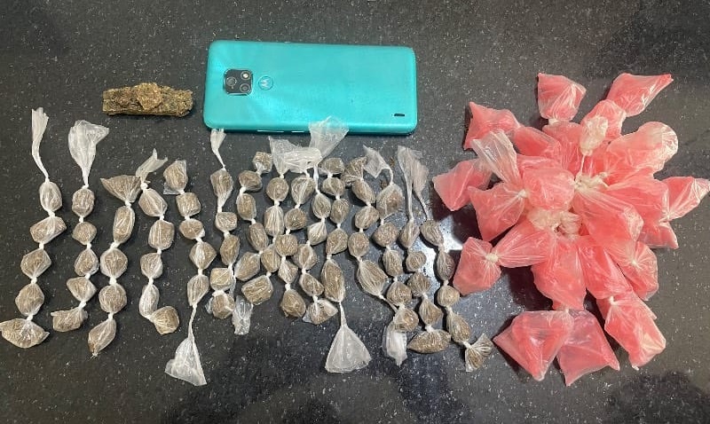 Os suspeitos conseguiram fugir em direção ao Boqueirão, uma área de mata, mas deixaram para trás 74 buchas de maconha, totalizando 72 gramas, além de um pedaço de maconha com 10 gramas e 174 embalagens para armazenamento de entorpecentes.