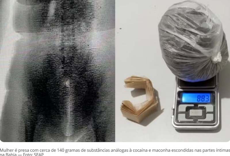 Juazeiro: Uma mulher foi detida ao tentar entrar no Conjunto Penal de Juazeiro, na Bahia, na última terça-feira (14). Com ela, foram encontrados cerca de 140 gramas de substâncias semelhantes à cocaína e maconha escondidas nas partes íntimas.