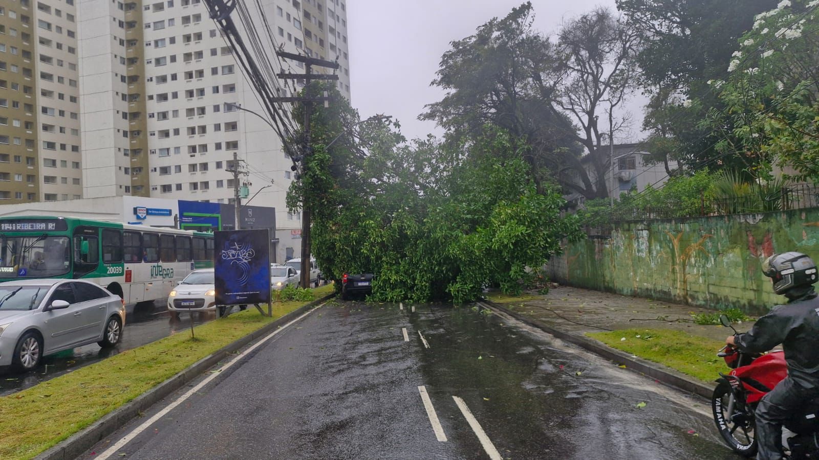 Segundo informações da Transalvador, felizmente, ninguém ficou ferido. A queda da árvore foi atribuída aos fortes ventos e chuvas intensas que afetaram a capital baiana desde a madrugada.