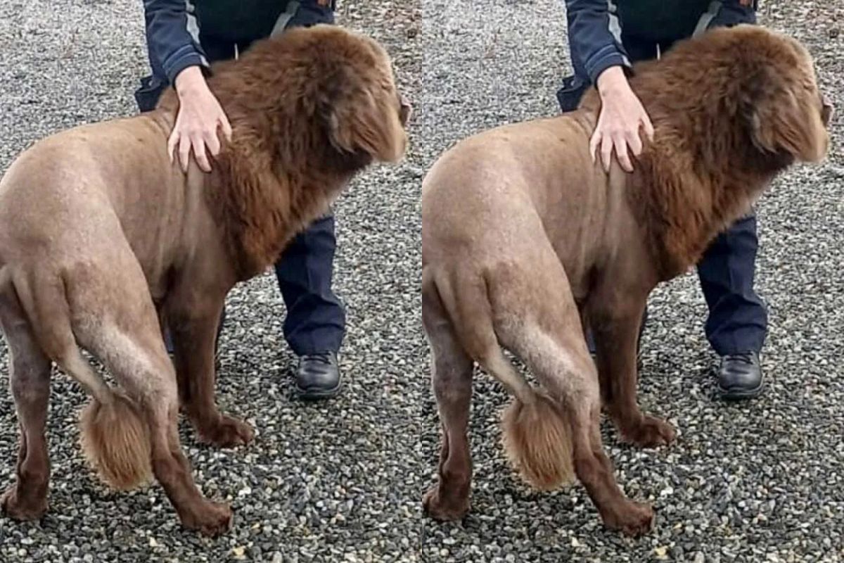 Após investigações, o caso foi esclarecido: não havia um “rei da selva” na floresta, mas sim um cão da raça terra nova, com uma tosa pouco convencional, que saiu para passear.
