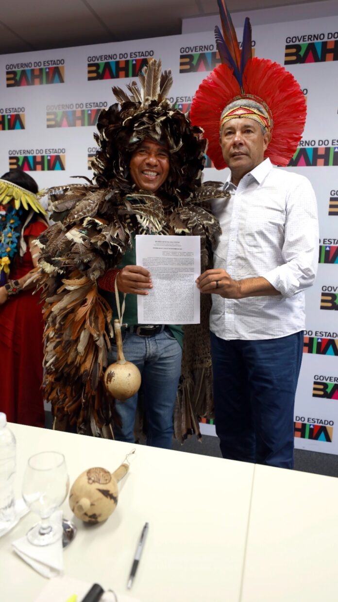 Ainda segundo o governador, “essa conquista não é retrocesso, mas sim direito garantido, construído em diálogo com os povos indígenas para assegurar a proteção das nossas matas, florestas, caatinga, e mares. É um ato de proteção,” concluiuPara o secretário de Justiça e Direitos Humanos do Estado da Bahia, Felipe Freitas, a demarcação representa um avanço para o desenvolvimento do estado e o reconhecimento do protagonismo dos povos indígenas. “Trata-se de um ato de justiça com esses povos e é importante também para estabelecer a paz no nosso estado. A demarcação garante direitos aos indígenas e contribui para que as políticas públicas sejam realizadas com segurança e tranquilidade nessas regiões da Bahia.”