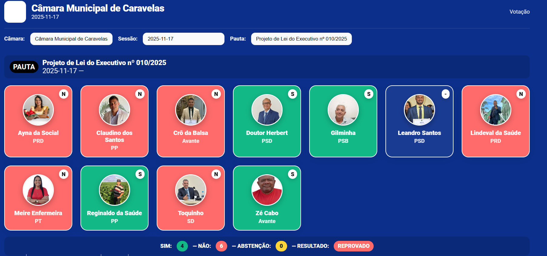 Votaram a favor (SIM): Reginaldo da Saúde, Gilminha, Zé Cabo e Doutor Herbert.