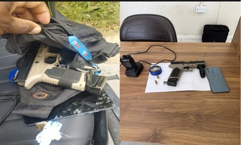 Os agentes estavam realizando abordagens rotineiras a veículos quando interceptaram uma motocicleta que trafegava em alta velocidade. Durante a busca, encontraram uma pistola calibre 9mm, juntamente com dois cartuchos do mesmo calibre. Além da arma, também foram apreendidos uma lanterna, um aparelho celular, um relógio e uma porção de maconha.