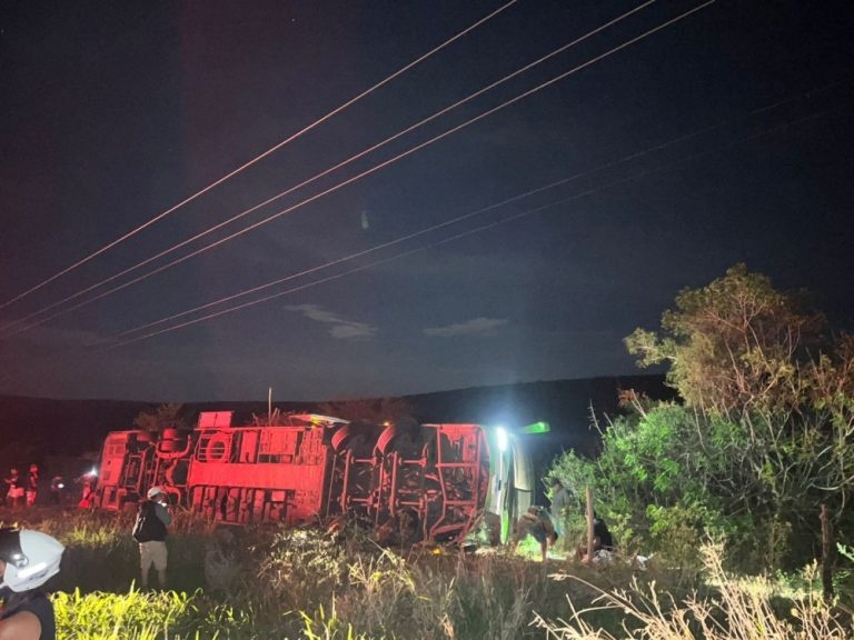 Ônibus de turismo tomba entre Planaltino e Nova Itarana
