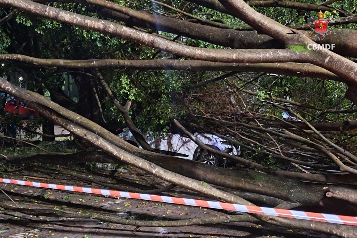 Devido à quantidade de galhos que caíram no estacionamento, os bombeiros utilizaram um guindaste para desobstruir a área. A Neoenergia e a Novacap foram acionadas para ajudar no local.
