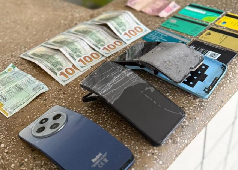 Durante a ação, foram apreendidos com ele: 3 celulares danificados; US$ 400; R$ 5; 6 cartões de crédito; 1 CNH falsa. Barbosa permanece detido na custódia da Polícia Civil de Teixeira de Freitas, à disposição da Justiça, sob a responsabilidade do delegado plantonista Maderson Souza Dias.