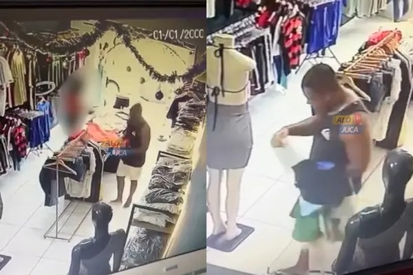Nas imagens enviadas ao Alô Juca, é possível ver o homem entrando no provador carregando diversas peças de roupas que, segundo o proprietário, foram furtadas. O comerciante estima que o prejuízo ultrapassa R$ 3 mil.