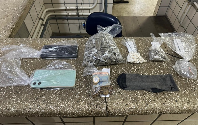 Durante rondas na Rua Paraguaçu, a polícia abordou um homem com comportamento suspeito ao sair de uma casa. Com ele, foram encontrados materiais ilícitos, o que levou os policiais a entrarem no imóvel e flagrarem o tráfico.