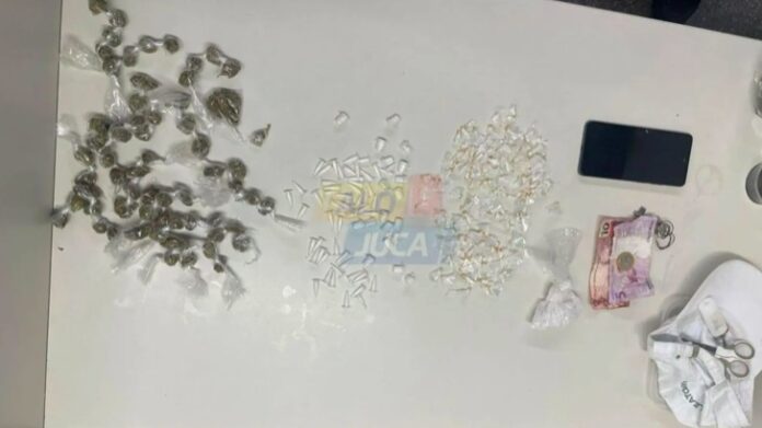 Com o suspeito, a equipe da Rondesp Atlântico apreendeu uma grande quantidade de entorpecentes. Ao todo foram apreendidas 130 pedras de crack, 73 pinos de cocaína, 65 porções de maconha, além de um aparelho celular.