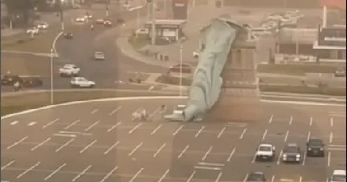 Um temporal derrubou um monumento em frente à loja da Havan que simula a Estátua da Liberdade nesta segunda-feira (15). Os ventos atingiram até 90 km/h na cidade de Guaíba, Região Metropolitana de Porto Alegre (RS), provocando a queda da estátua de 24 metros.