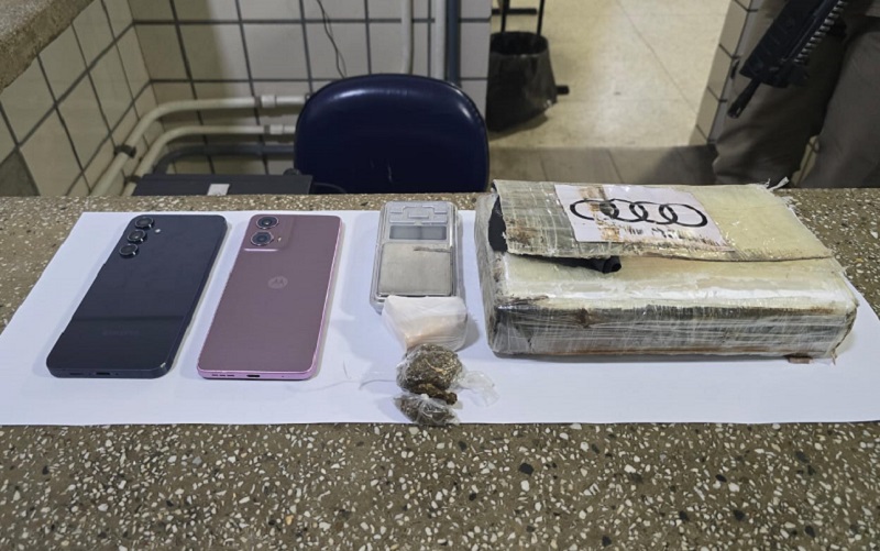 Ao adentrar o imóvel onde o foragido estava hospedado, os agentes encontraram, além do indivíduo, uma grande quantidade de drogas e equipamentos para o tráfico: aproximadamente 1 quilo de cocaína, 38 gramas de crack, 6 gramas de maconha, 1 balança de precisão e 2 aparelhos celulares.