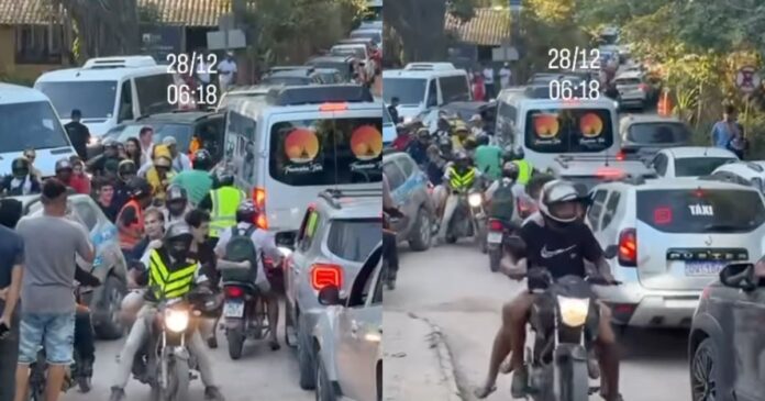 Imagens publicadas no Instagram pela página Trancoso da Revolução mostram um longo congestionamento, além da presença de mototaxistas transportando pessoas ao fim do evento. Em um dos vídeos, uma pessoa comenta: “Impossível alguém entrar aqui”.