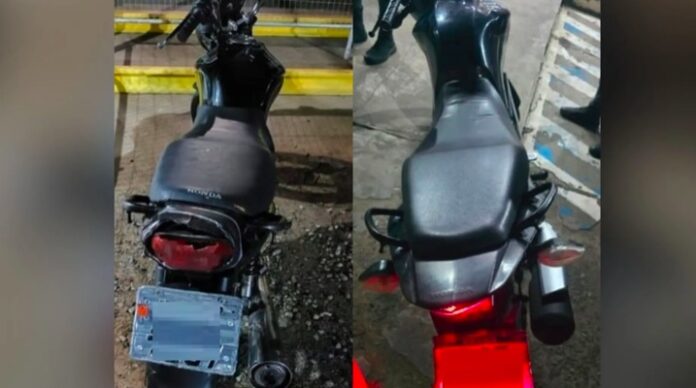 Após consulta aos sistemas de segurança, foi constatada a restrição de furto e roubo da motocicleta. Diante do flagrante, a vistoria foi ampliada para outros veículos estacionados nas proximidades.