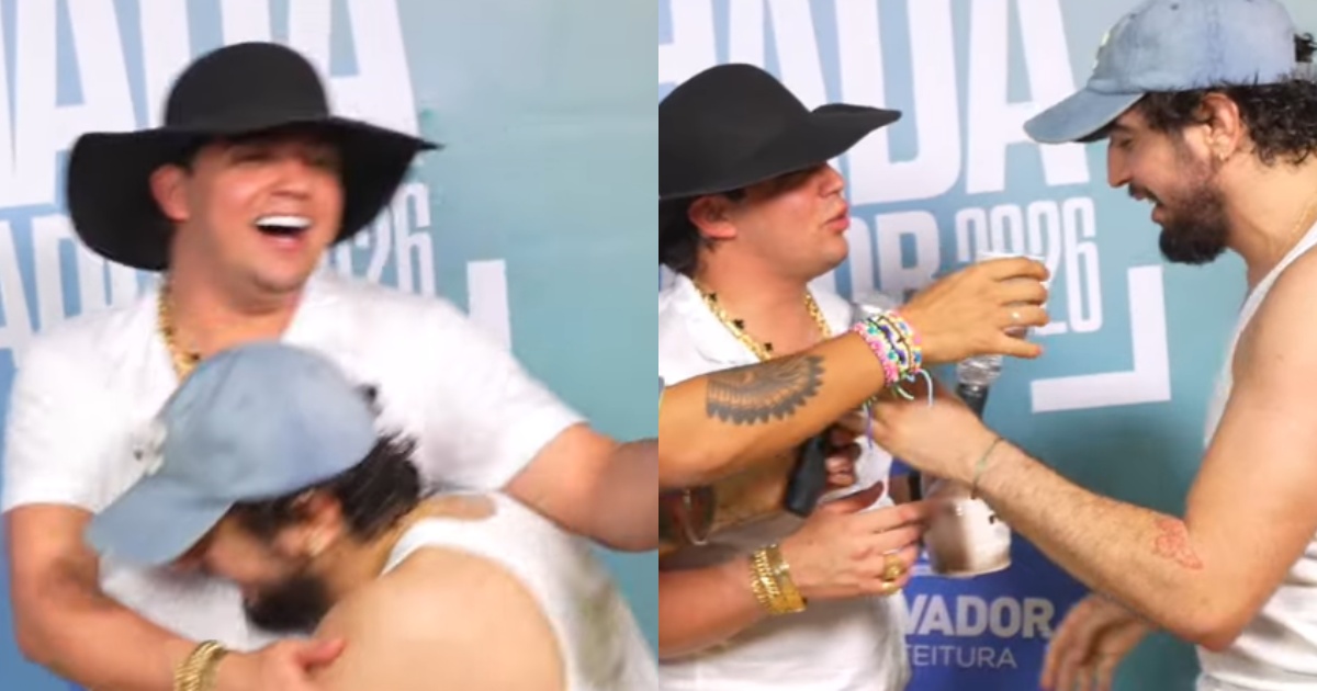 Nos bastidores, a dupla se abraçou, demonstrando que as dúvidas sobre a boa relação ficaram no passado. Na transmissão da Prefeitura de Salvador no YouTube, Natanzinho Lima concedia entrevista quando Nattan invadiu a live para abraçar o xará.
