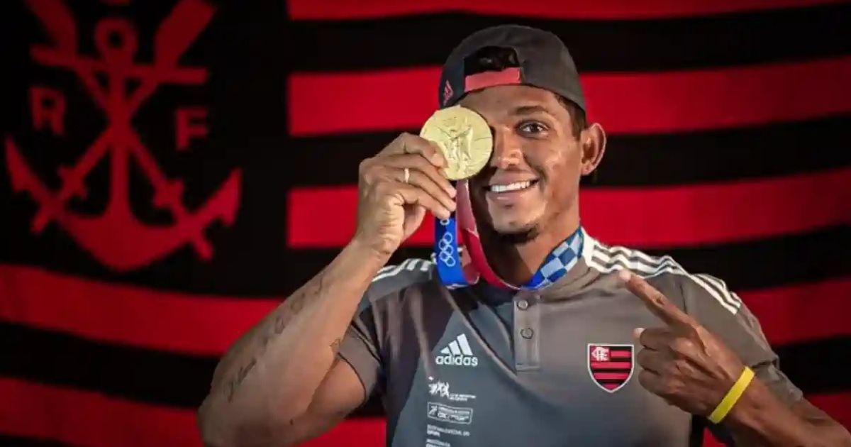 “O Flamengo se orgulha de Isaquias Queiroz, um dos maiores atletas da história do esporte olímpico brasileiro. Campeão olímpico com cinco medalhas, ele vestiu o Manto Sagrado por cerca de sete anos, encerrando seu ciclo no clube com um legado de conquistas.”