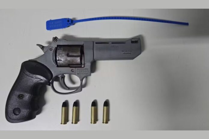 A Polícia Militar foi acionada e localizou o suspeito nos fundos do bar. Ele abordado e confessou a autoria, sendo autuado em flagrante. Próximo ao local, os agentes também encontraram o revólver calibre .38 com quatro munições intactas, que foram apreendidos.