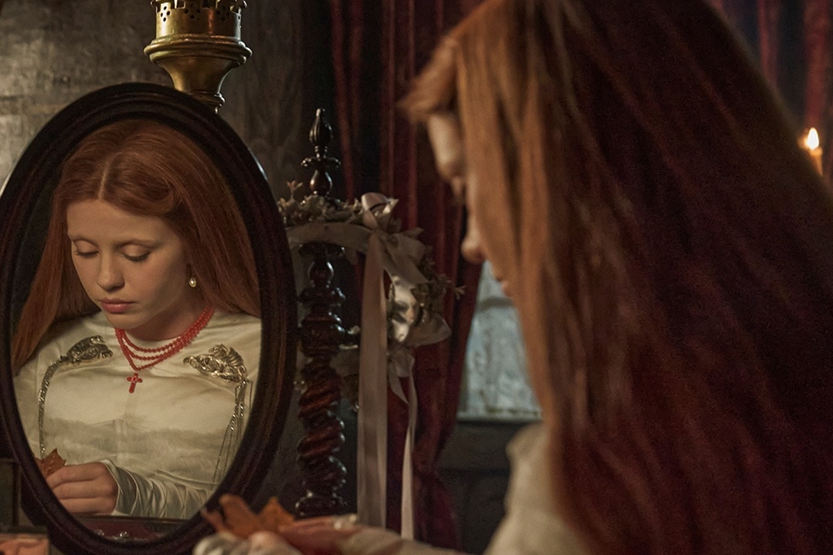 Os acessórios se destacam. Mia Goth ganha joias históricas, com peças de mais de 200 anos, em parceria com Tiffany & Co. Entre os destaques estão o colar The Wade, com mais de 40 quilates de diamantes, e a gargantilha The Beetle, em formato de escaravelhos de vidro e ouro 18k. Esses detalhes reforçam o diálogo entre o século XIX e a leitura estética de Del Toro.