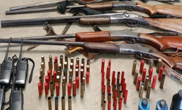 Entre as apreensões, constam: duas espingardas cal. 28, uma espingarda de cano duplo cal. 32, duas espingardas cal. 32, além de 44 cartuchos. Também foram encontrados três apitos chamariz, cinco rádios comunicadores, duas bases carregadoras, além de facas e canivetes.