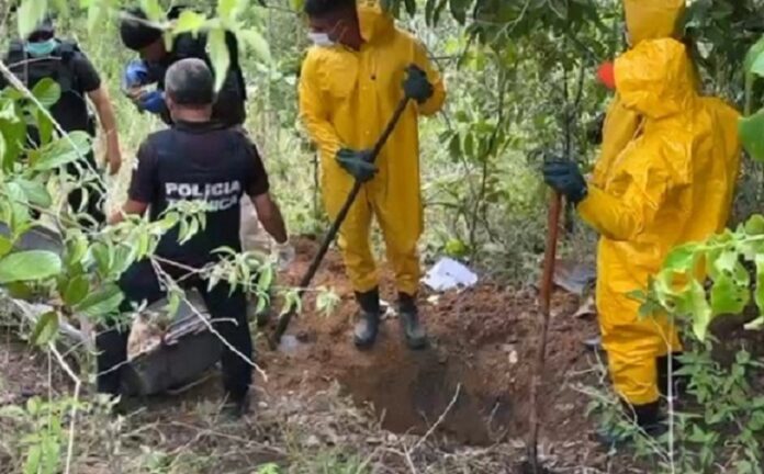 No local, as escavações com pás e enxadas foram necessárias até localizar o corpo a aproximadamente um metro de profundidade. A perícia da Polícia Técnica confirmou que a vítima havia sido esquartejada. Os restos foram recolhidos em uma cuba, removidos pela polícia e bombeiros, e encaminhados ao Instituto Médico Legal.