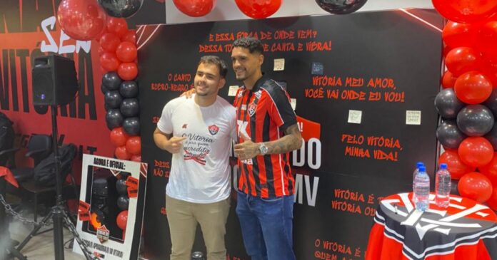 Em mais um dia da Semana do Sócio, a ação que promove descontos para planos de sócios do Vitória, o zagueiro Ricielli foi apresentado na loja do clube no Shopping Paralela nesta quarta-feira (13). Reforço para 2026, ele posou para fotos com torcedores que fizeram fila na entrada da loja.