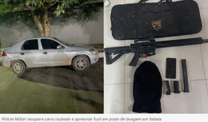 Próximo ao carro, foram encontrados um fuzil calibre 556 e uma cápsula calibre 45. No interior do Prisma, os policiais localizaram uma bolsa com um celular, uma touca ninja, um carregador de submetralhadora, um suporte de punho para fuzil e um carregador de bateria.