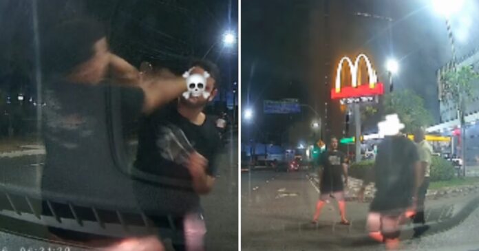 Em vídeo publicado nas redes, ele registra o momento em que o conflito verbal evoluiu para agressões físicas no meio da avenida. Seguranças de uma rede de fast-food tentaram afastar os envolvidos, mas sem sucesso.